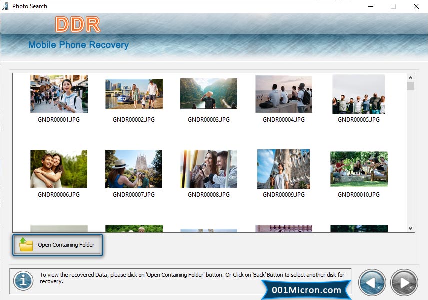 Click on "Open Containing Folder" button to view recovered data files and folders.